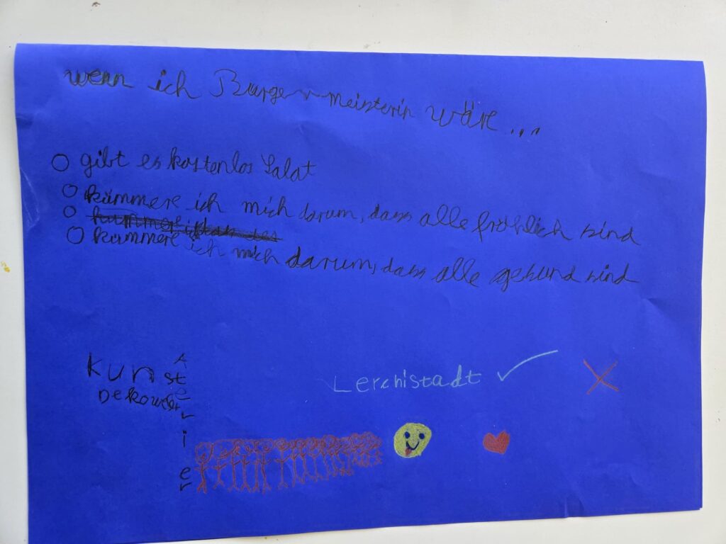 In den Osterferien öffnete für drei Tage die „Lerchistadt“ ihre Tore. Die Kinder konnten sich Berufe aussuchen und in den verschiedenen Betrieben arbeiten, um sich ihre Lerchis – so heißt das Geld in unserer Stadt – zu verdienen. Es gab viele unterschiedliche Betriebe: