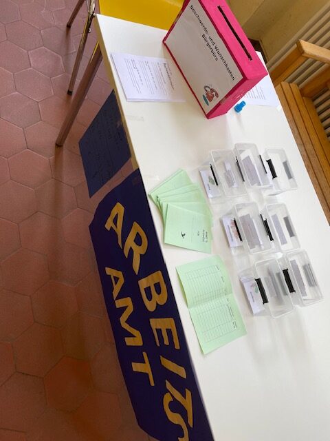 Jedes Kind erhielt einen Ausweis, in dem die ausgeübten Arbeiten sowie der Lohn aus den einzelnen Werkstätten eingetragen wurden. Mit diesem Ausweis konnten die Kinder zur Bank gehen, ihr Geld abheben und es in anderen Betrieben ausgeben. Am letzten Nachmittag luden die Kinder ihre Eltern und Geschwister zum Stadtfest ein und zeigten stolz, was sie in der Lerchistadt gelernt, gearbeitet und hergestellt haben.